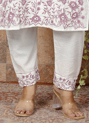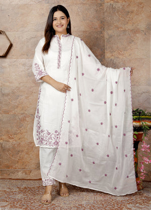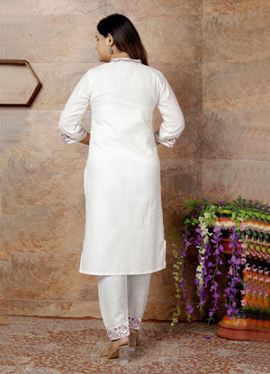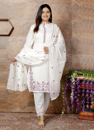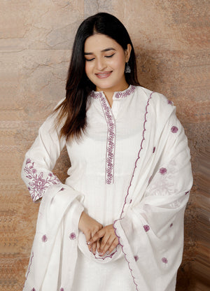 Baiza is where elegance meets effortlessness. Tailored in fine 60/60 cotton, this kurti set features exquisite katha work and beautiful embroidery on the front, sleeves, and hemline, with each stitch telling a quiet and pure story. Paired with beautifully detailed cotton pants and a soft mulmul dupatta adorned with delicate embroidery and cut dana work. This katha work cotton suit wraps you in breathability, texture, and grace. Designed for women who flow with poise and presence, Baiza by Kham brings comfort to every curve and occasion.