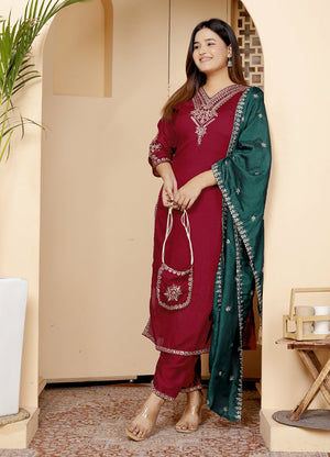 Set Includes: Kurti, Pants, Dupatta, and Purse
